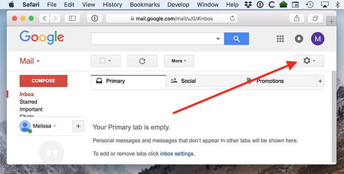 最后,如果您没有最近使用的电子邮件来取消阻止联系人,您可以改为从 Gmail 的设置中执行此操作。这些位于 Gmail 窗口右上角的大齿轮图标下。