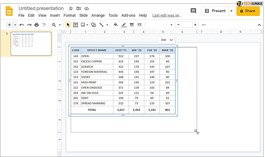 最常见的问题之一是无法看到表格中的所有元素。一张幻灯片的空间有限,因此仅仅因为您能够在 Google 表格中清楚地看到某些内容,并不意味着您将能够在 Google 幻灯片中看到它。最糟糕的是,当您尝试格式化幻灯片时,没有任何反应,令人沮丧。