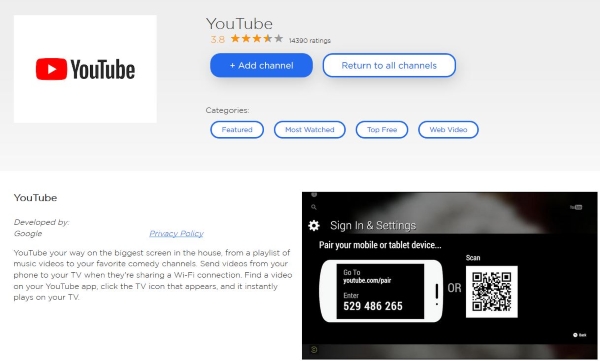如果您的 Roku 版本没有作为已安装频道包的一部分随附 YouTube,则添加它非常简单。将 YouTube 添加到 Roku 后,您就可以对任何可用频道重复此过程以添加这些频道。