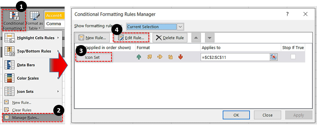 - 如果您想更改它,请转到条件格式下的管理规则。