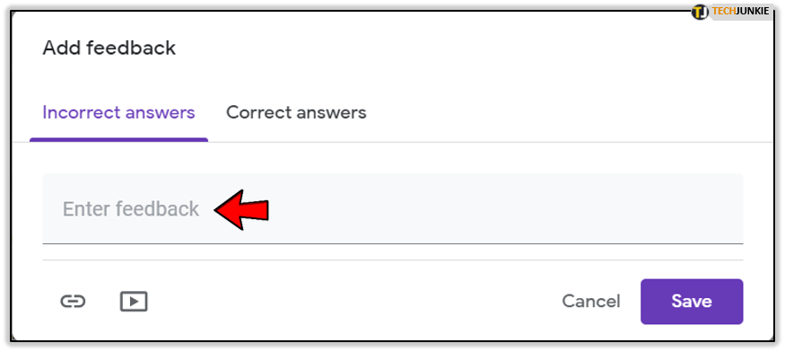 - 如果您在纠正学生时需要更直观的内容,您可以选择单击“链接”图标。这将允许您添加指向“添加反馈”选项的链接,以防您需要唤起学生的记忆,将他们引导至包含有关问题或主题的更多信息的页面或视频。