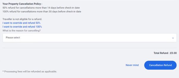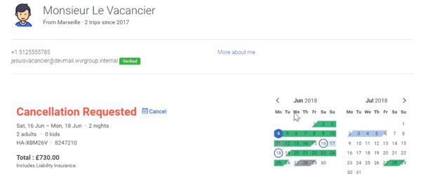 预订将被取消,旅行者通过电子邮件通知他们。退款将由 HomeAway 处理并记入贷方。