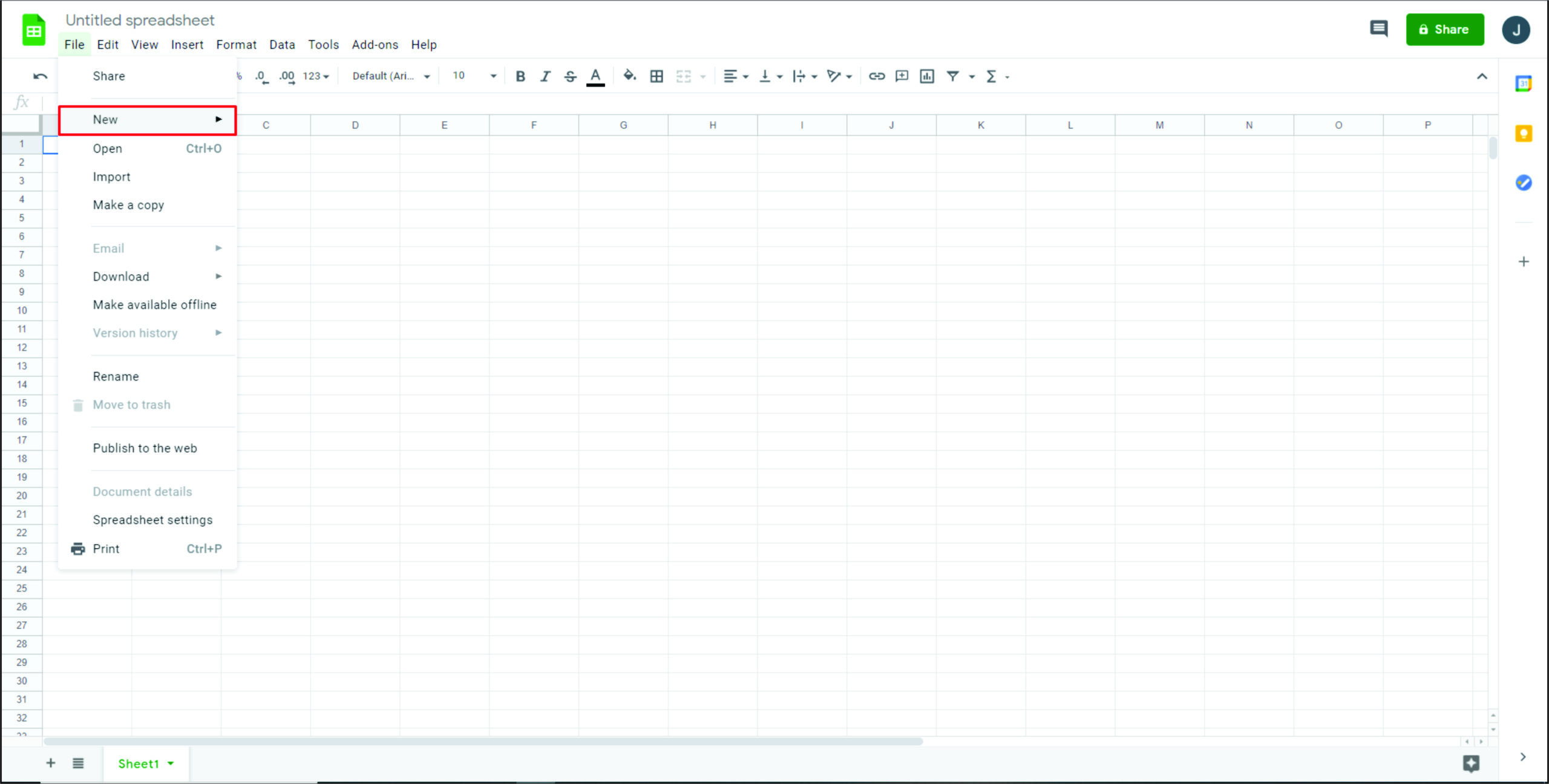 - 打开一个新的 Google 表格文档。