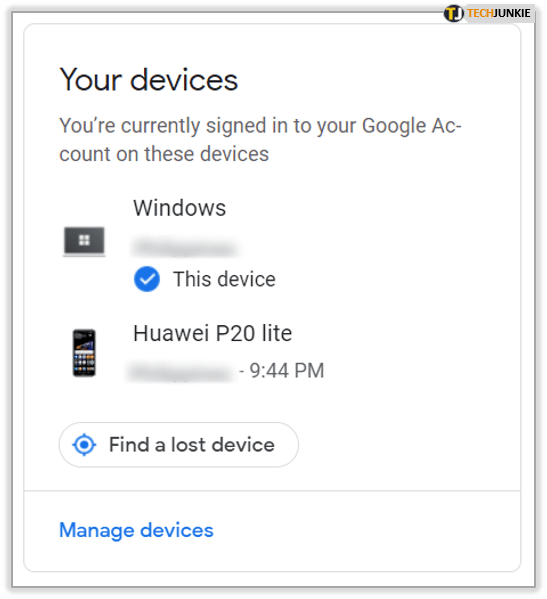 您还可以查看 Google 安全页面,滚动到您的设备,看看有什么