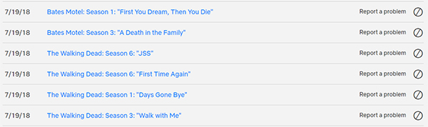 您的观看历史列表详尽而完整,包含您看过的每一部电影和电视剧集的完整列表按时间倒序观看。删除单个条目非常容易;只需找到标题,单击标题右侧带有线条图标的圆圈,该标题就会从您的查看历史记录中删除。同样,您将在 24 小时内停止看到基于标题的推荐,这可以轻松地从您的帐户中删除某些内容并完全清除您曾经看过该骗局帐篷。