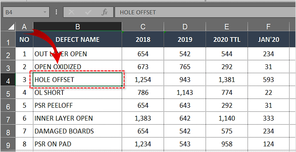 在 Excel 中还有一种取消隐藏单行或单列的方法。但是,您首先需要访问隐藏的行或列。