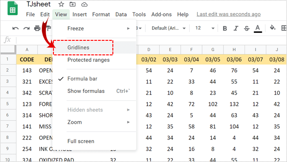 Microsoft Excel 有自己的方式来切换电子表格中的网格线。在接下来的步骤中,我将向您展示如何在 Google 表格中找到控制网格线的设置。此网格线切换将控制编辑电子表格时屏幕上可见的内容以及打印时看到的内容。这与 Excel 不同,Excel 有单独的控件用于查看和打印网格线。