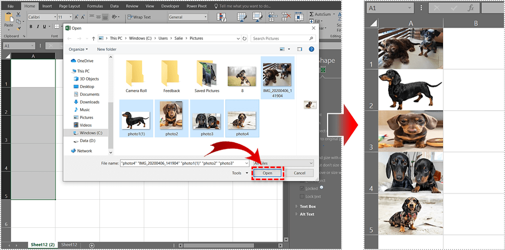 - 选择图像所在的文件夹,并指定要加载到 Excel 中的图像。
