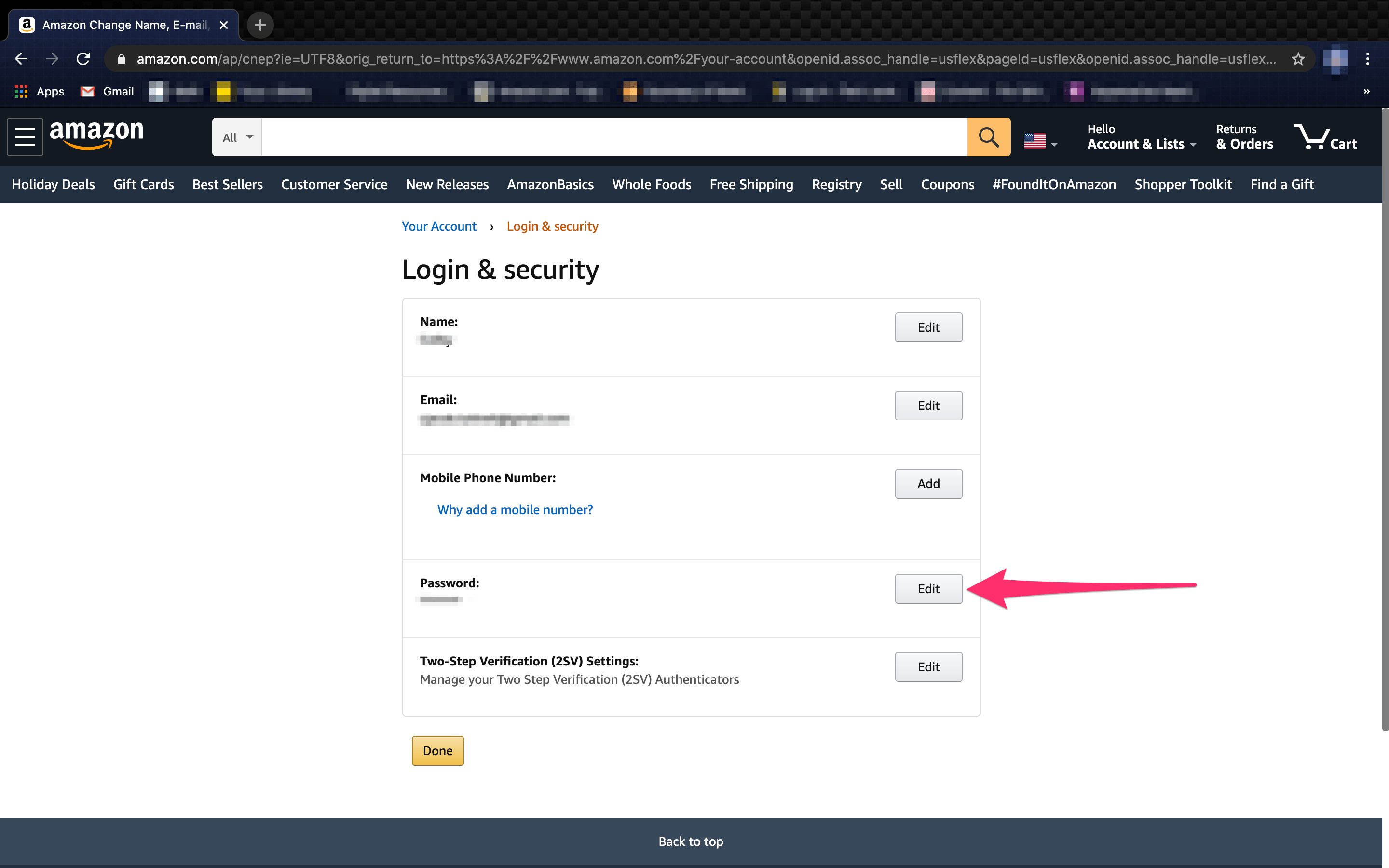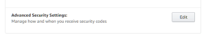 最后登录 & 上的行安全页面是您的“高级安全服务”廷斯”。当您单击该行的“编辑”按钮时,它会将您带到一个新页面,您可以在其中为您的亚马逊帐户设置 2FA。