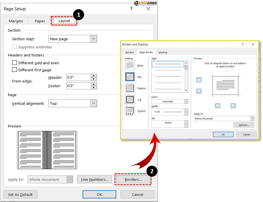 为小册子添加边框可以使其看起来更漂亮、更专业。要设置边框,请返回页面设置,选择布局选项卡,然后选择边框。