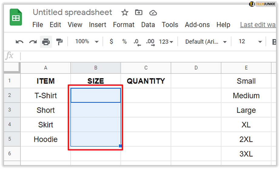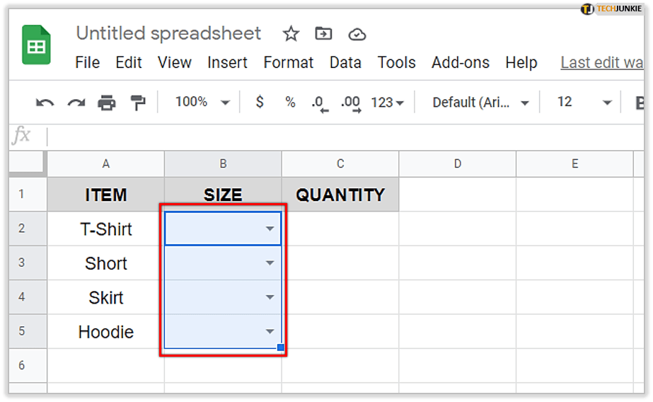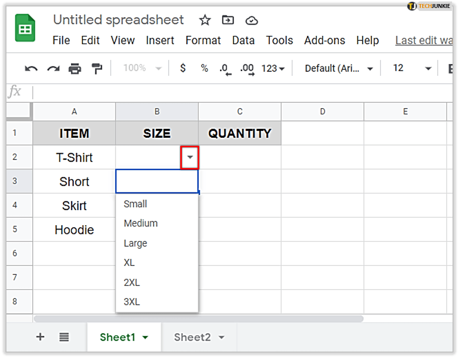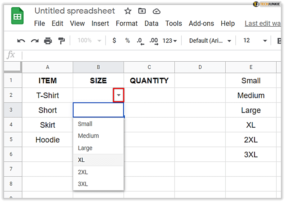 8. 下拉列表应显示在您在第 3 步中输入的单元格中。它显示为一个小箭头图标。