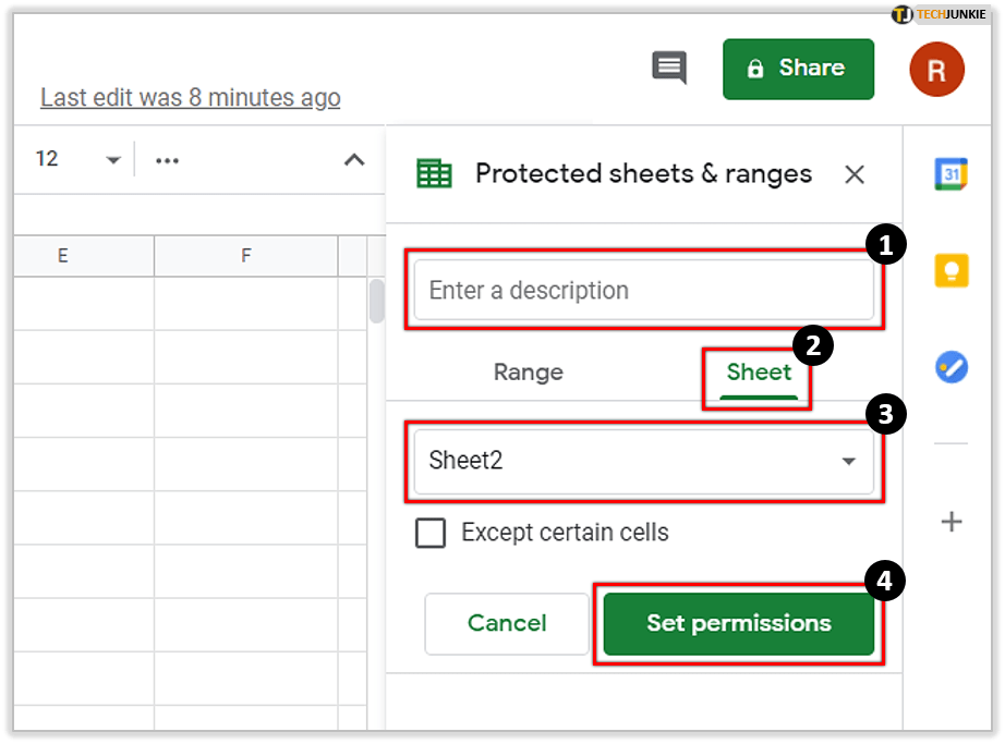 9. 通过选择数据然后选择受保护的工作表和范围来保护工作表 2。