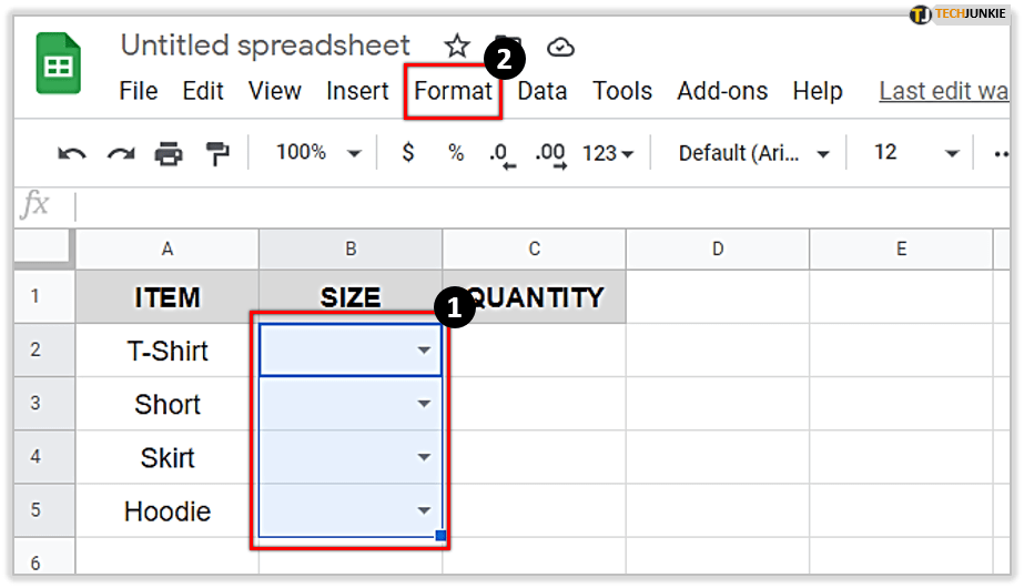 1. 使用下拉列表突出显示单元格并选择“格式”选项卡。