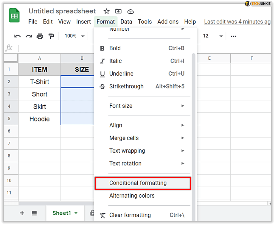 2. 从出现的菜单中;向下滚动并选择“条件格式”。