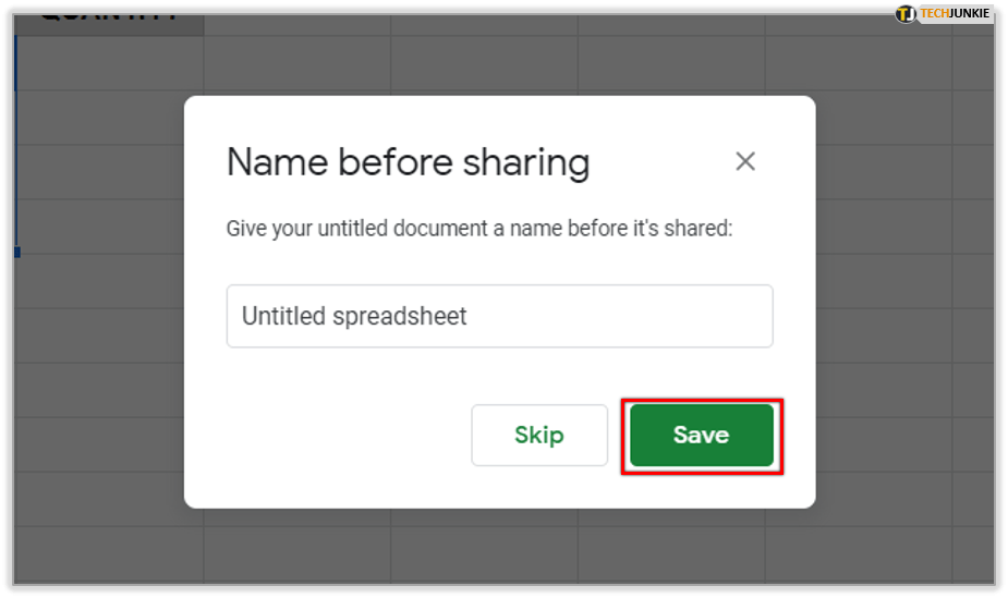 2. 如果出现提示,请为您的工作表命名,然后单击位于弹出窗口右下角的“保存”。