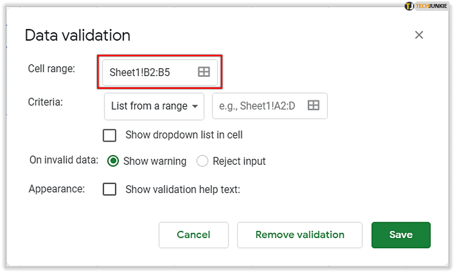 您的 Google 表格可能是一个不断发展的文档,因此使用此选项可以轻松更新您的下拉列表。