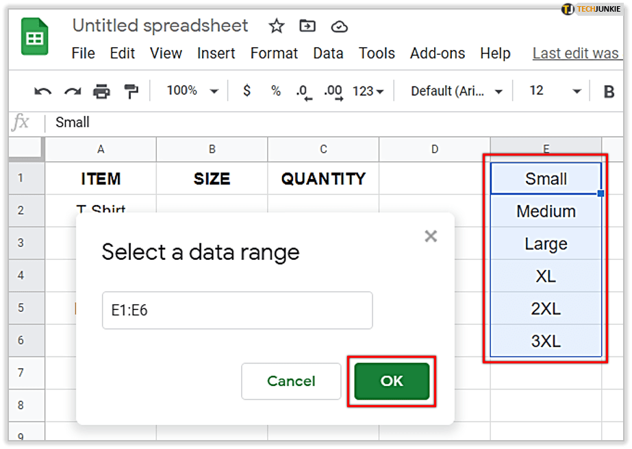 4. 如果您突出显示了适当的单元格范围;这应该会自动填充在单元格范围部分。如果需要,您可以在此处更改范围。
