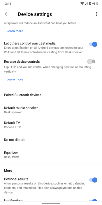 点击此选项,然后选择屏幕底部的“启用配对模式”。这将使您的扬声器进入配对模式。跳转到设备上的设置菜单并查找蓝牙。搜索等待配对的设备,您会看到您的家庭扬声器出现在此列表中。配对后,您的 Google Home 将像任何其他标准蓝牙扬声器一样工作。