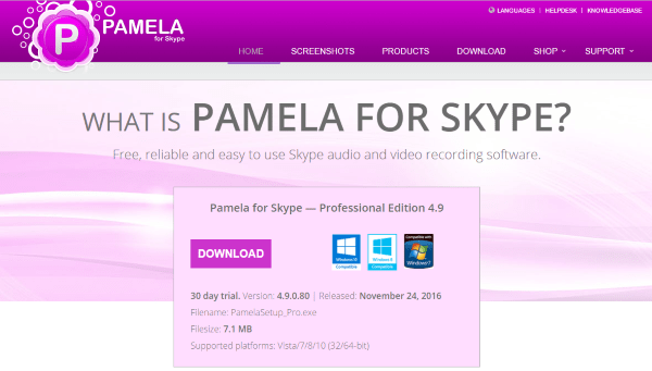 要在 Windows 中录制 Skype 通话,您可以使用名为 Pamela 的应用程序。奇怪的名字,但强大的工具。它有一个免费和高级版本,可以记录通话、聊天、视频、安排通话、提供电话应答服务、转发电子邮件和消息等等。这是一个运行良好的简洁程序。
