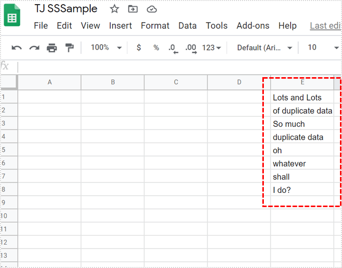 - 打开要排序的电子表格,然后单击要重复数据删除的数据几行的空单元格。