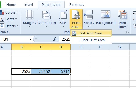 首先,通过按住鼠标左键并拖动光标来选择电子表格中要包含在打印区域内的单元格范围。单击“页面布局”选项卡上的打印区域。选择下方快照中显示的设置打印区域选项。