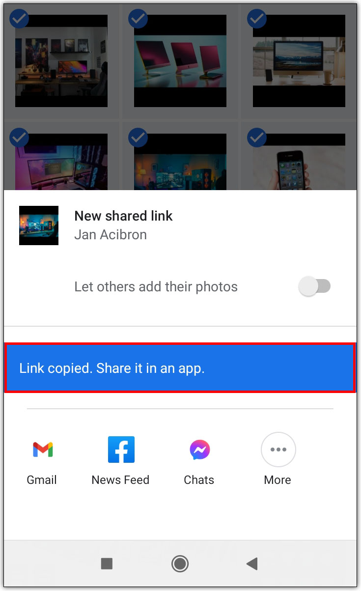 - 完成后,此人将在他们的电子邮件中收到链接,他们可以打开该链接以查看您的 Google 相册。