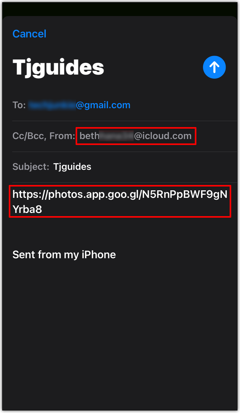 - 选择发送照片链接的方式。最简单的方式是通过电子邮件发送。