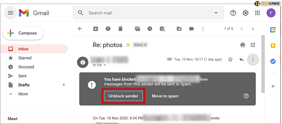 如果您有来自发件人的邮件手头解锁(您也可以搜索一个,甚至垃圾邮件文件夹):