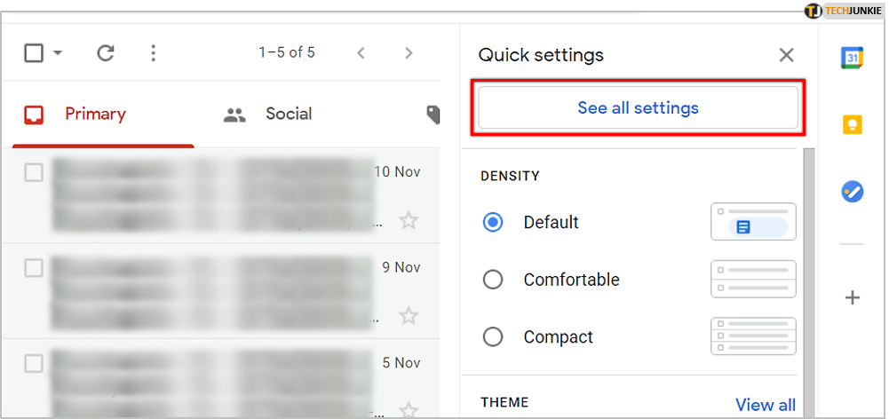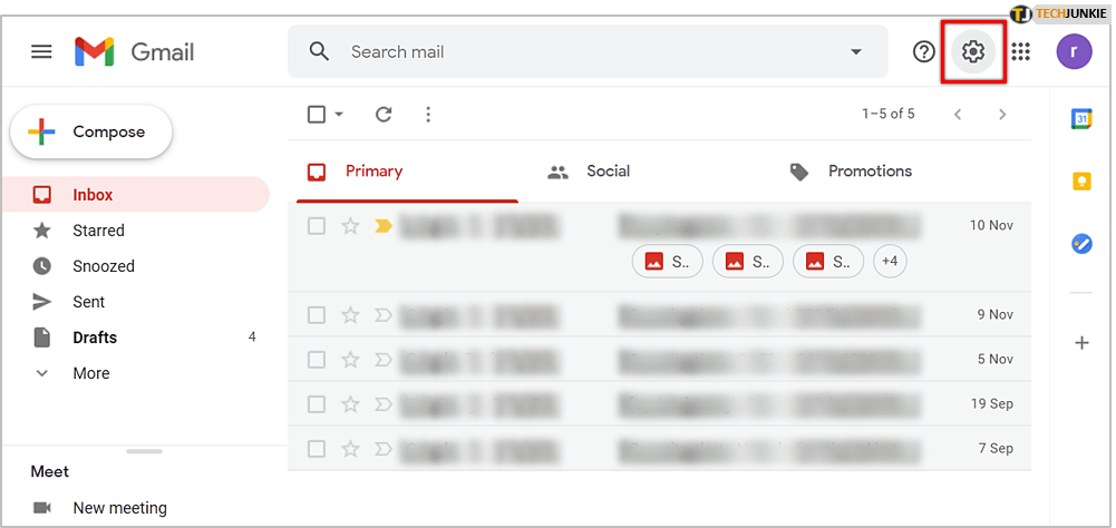 - 点击设置<位于 Gmail 主窗口右上角的 span style="font-weight: 400;">图标(看起来像齿轮或齿轮)。
