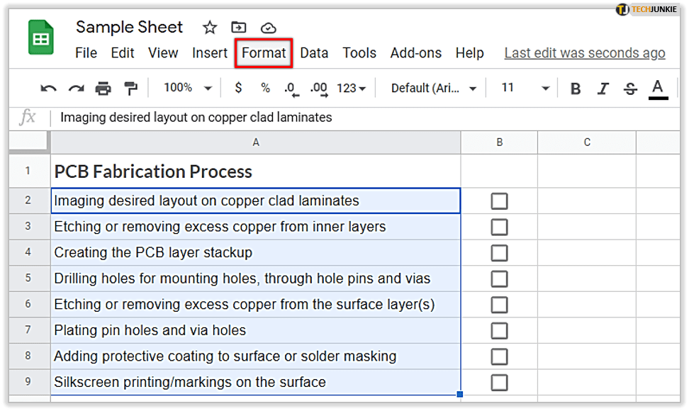 由于普通单元格和复选框单元格的格式规则相同,因此您可以根据其他部分自定义它们你的电子表格。这意味着您可以使用不同的颜色来标记它们,此外,它们的字体和字体大小也可以更改。
