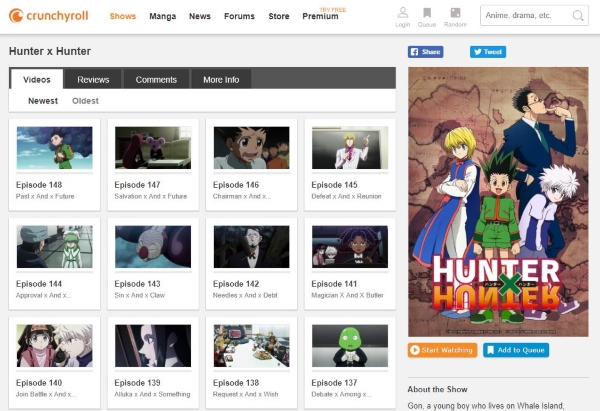 Crunchyroll 是大多数动漫的首选之地。它没有一切,但它所拥有的是来自所有类型的高质量、全长动漫。据我所知,Hunter x Hunter 的每一集都没有,但有很多。