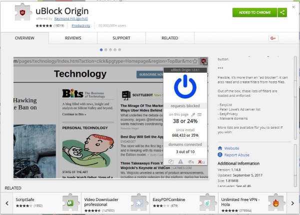 uBlock Origin 可以根据需要使用第三方过滤器,但这会带来流程开销。扩展程序通过不提供广告服务节省了资源,从而在一定程度上减轻了这种开销。