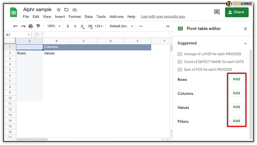 创建数据透视表很简单,只需要两个步骤。之后,您将能够看到一个侧面板,它将指导您完成编辑过程。