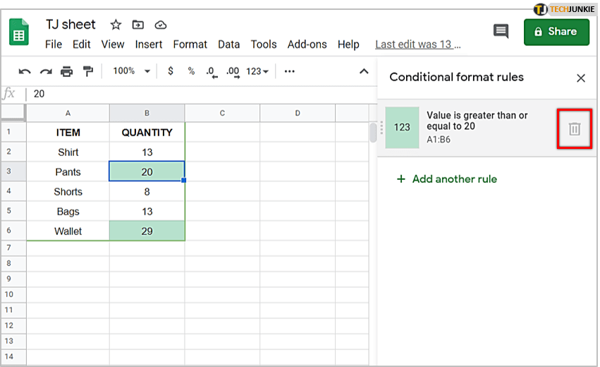 - 格式规则旁边有一个小的垃圾桶图标。点击这里删除规则。