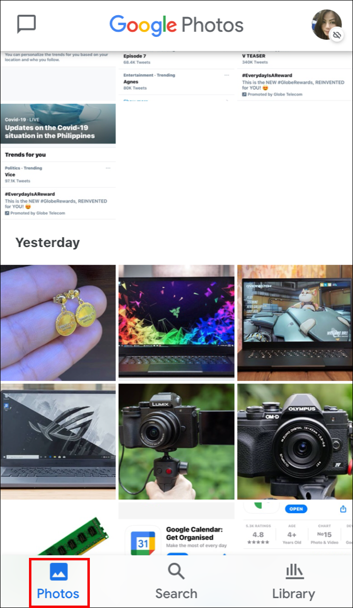 - 打开移动应用并导航至位于左下角的“照片”