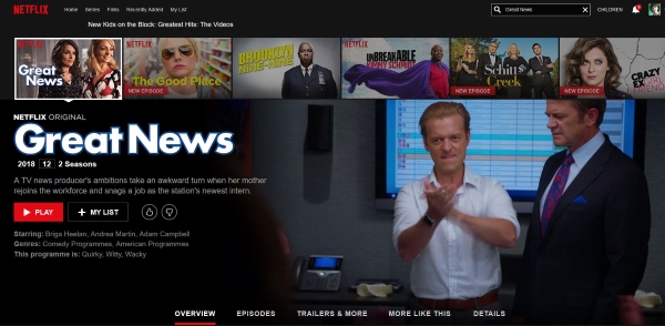 Great News 以电视台和母女关系为基础。女儿在下午的一个名为 The Breakout 的节目中工作,她的妈妈作为实习生加入了车站。通常情况下,孩子会因为妈妈在身边或被母性智慧所破坏而感到尴尬。