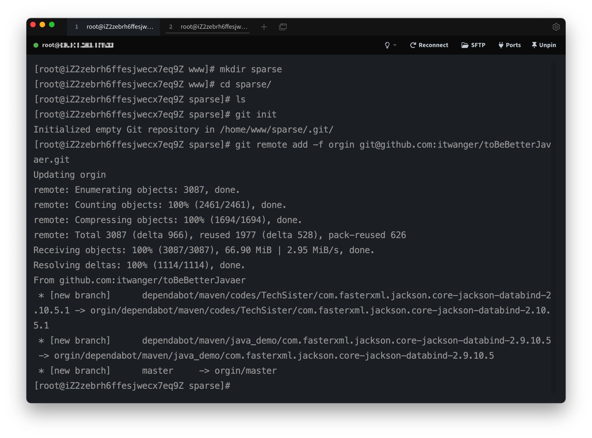 元旦不是搭建了一个《Java 程序员进阶之路》的网站嘛,其中用到了 Git 来作为云服务器和 GitHub 远程仓库之间的同步工具,