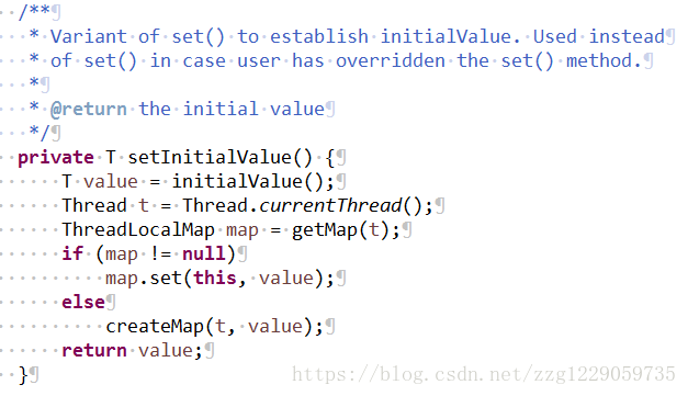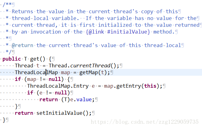 其中getMap(t)回传的就上当前执行绪的threadlocals,如下图,然后根据当前ThreadLocal实体物件作为key获取ThreadLocalMap中的value,如果首次进来这呼叫setInitialValue()