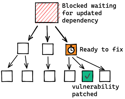 在 Java 生态中,开发者通常的做法是指定软件版本方面的“软”要求——假设没有其它版本的相同包出现在依赖关系图中,决议算法会使用指定的明确版本,对于此类修复,通常需要维护者采取更加明确的行动,以将依赖需求更新为修补后的版本,这种做法与其它生态形成了鲜明的对比,例如在 npm 软件包中,开发者通常会为依赖项指定开放范围,开放范围允许决议算法选择满足依赖性要求的最近发布的版本,从而引入新的修复,