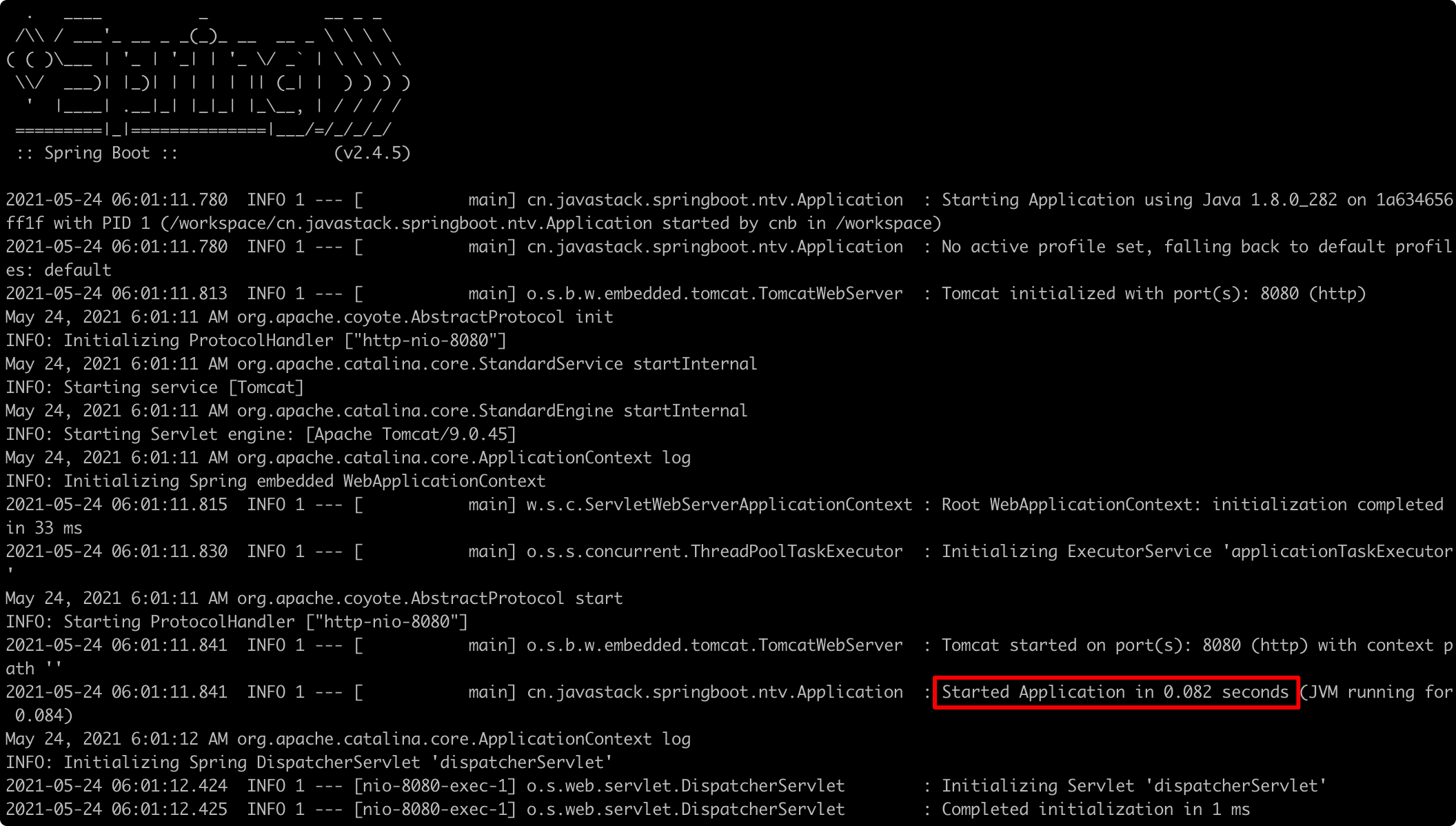 如图,堆栈长做了测验,82 毫秒就启动了,启动确实快,,