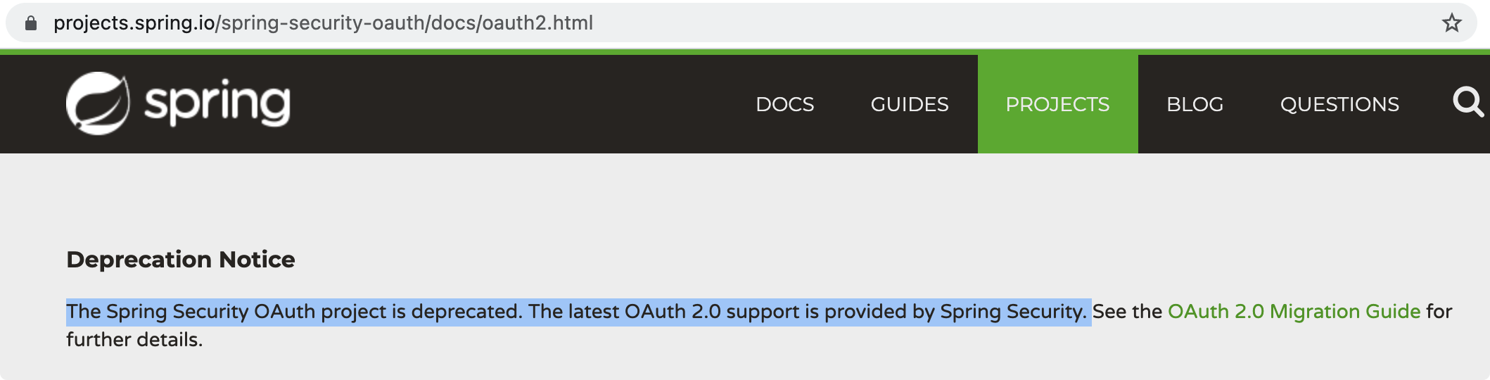 Spring Security OAuth 项目已经被弃用了: