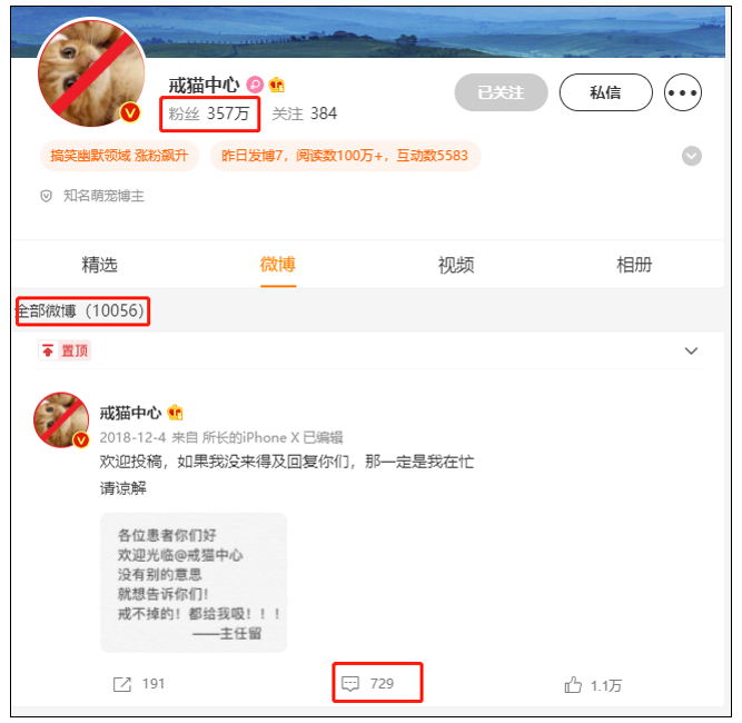 值得注意的是红线圈出的功能:粉丝数量,微博总数,评论、转发、点赞数量,