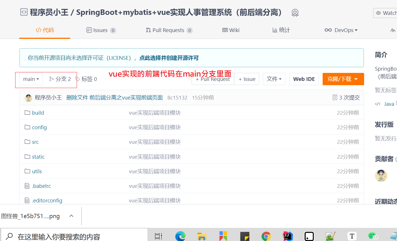 - Springboot+mybatsi后端的代码位置在back分支里面