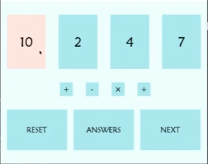 从1~10这十个数字中随机抽取4个数字(可重复),对这四个数运用加、减、乘、除和括号进行运算得出24,每个数字都必须使用一次,但不能重复使用,详见: