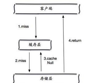 当存盘层不命中后,即使回传的空物件也将其快取起来,同时会设定一个过期时间,之后再访问这个资料将会从快取中获取,保护了后端资料源;