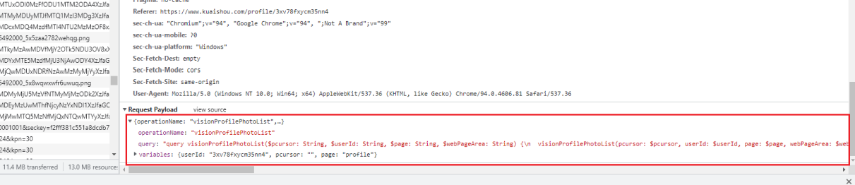 data =https://www.cnblogs.com/qshhl/p/ { 'operationName': "visionProfilePhotoList", 'query': "query visionProfilePhotoList($pcursor: String, $userId: String, $page: String, $webPageArea: String) {\n visionProfilePhotoList(pcursor: $pcursor, userId: $userId, page: $page, webPageArea: $webPageArea) {\n result\n llsid\n webPageArea\n feeds {\n type\n author {\n id\n name\n following\n headerUrl\n headerUrls {\n cdn\n url\n __typename\n }\n __typename\n }\n tags {\n type\n name\n __typename\n }\n photo {\n id\n duration\n caption\n likeCount\n realLikeCount\n coverUrl\n coverUrls {\n cdn\n url\n __typename\n }\n photoUrls {\n cdn\n url\n __typename\n }\n photoUrl\n liked\n timestamp\n expTag\n animatedCoverUrl\n stereoType\n videoRatio\n profileUserTopPhoto\n __typename\n }\n canAddComment\n currentPcursor\n llsid\n status\n __typename\n }\n hostName\n pcursor\n __typename\n }\n}\n", 'variables': {'userId': "3x9dquvtb9n9fps", 'pcursor': "", 'page': "profile"} }