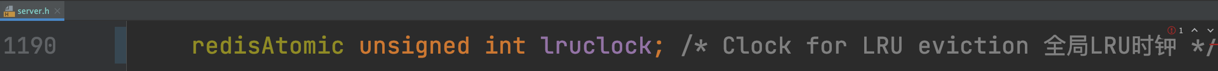 这全域LRU时钟保存在Redis全域变量server的成员变量lruclock