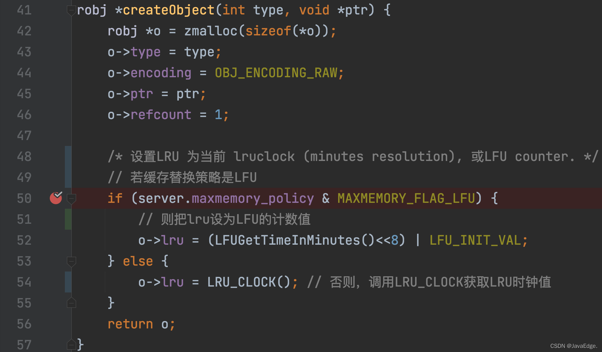 对于一个KV对,其LRU时钟值最初是在这KV对被创建时,进行初始化设定的,这初始化操作在createObject函式中呼叫,当Redis要创建一个KV对,就会呼叫该函式,