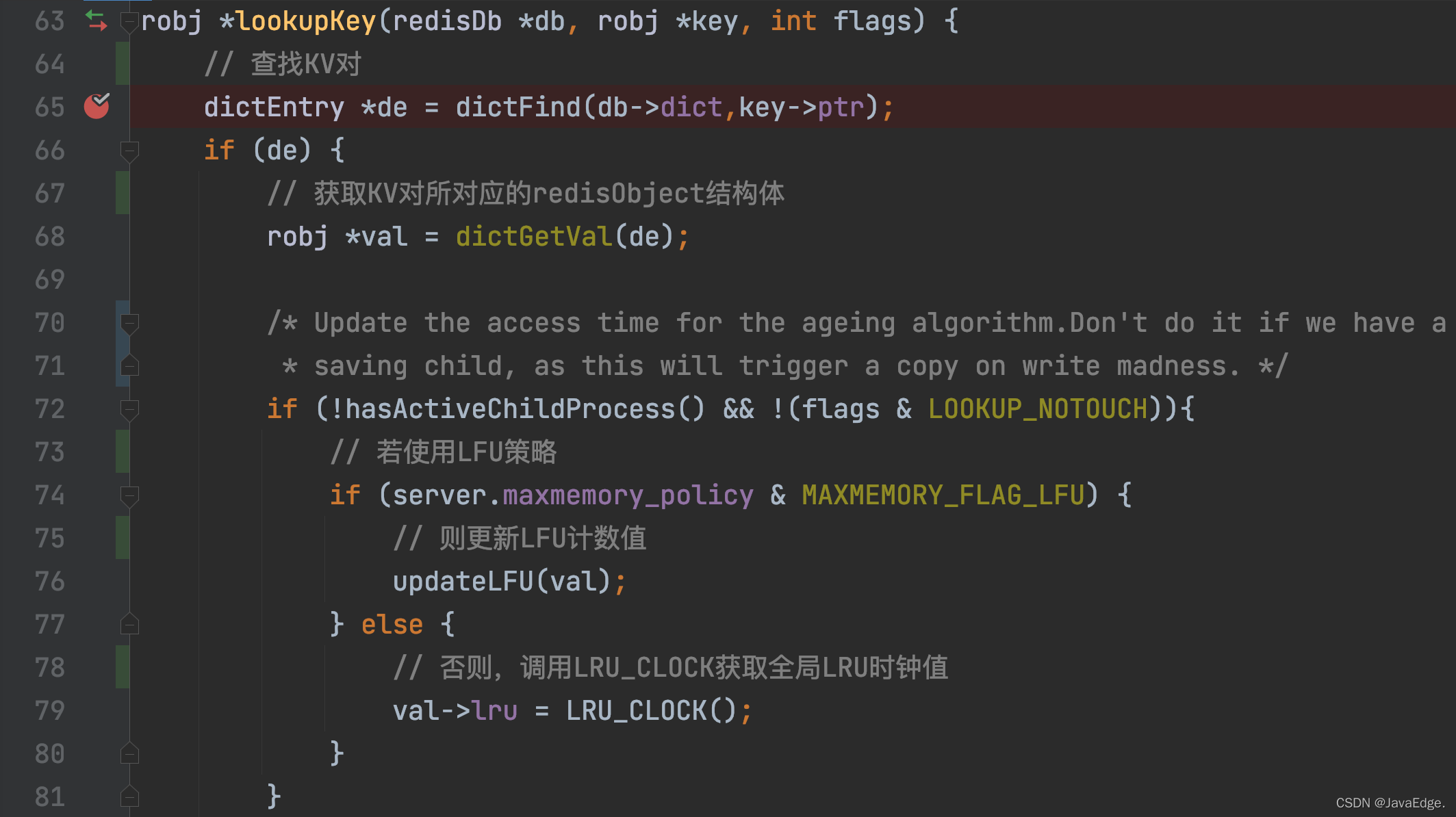 只要一个KV对被访问,其LRU时钟值就会被更新!而当一个KV对被访问时,访问操作最终都会呼叫lookupKey,