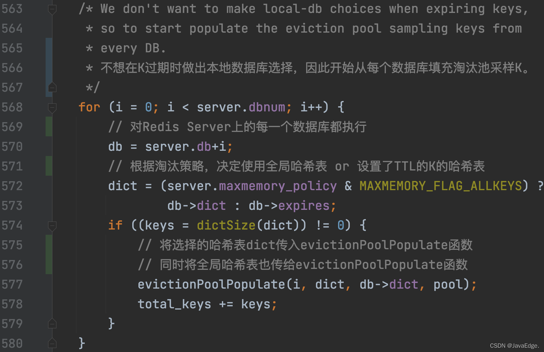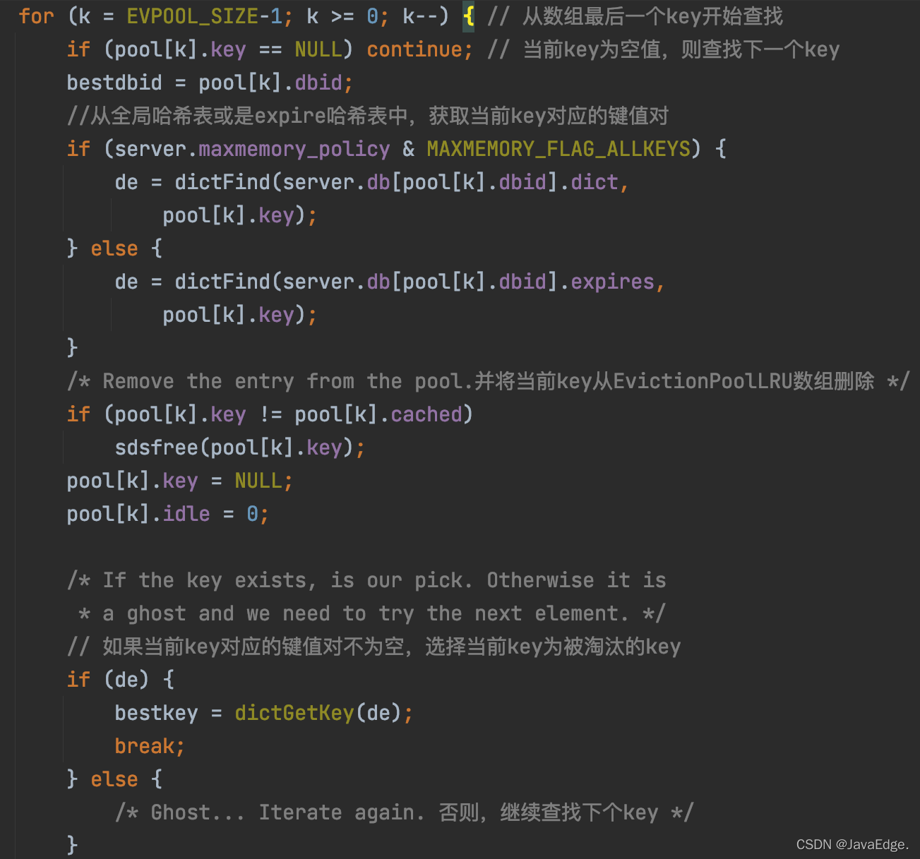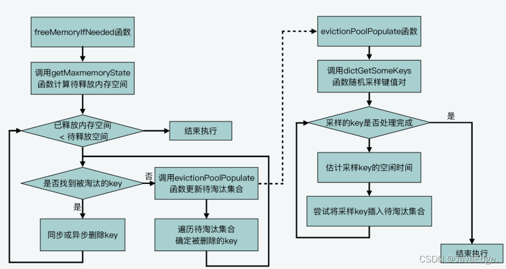 有一成立,evictionPoolPopulate就能把采样KV对插入EvictionPoolLRU阵列,等所有采样键值对都处理完后,evictionPoolPopulate函式就完成对待淘汰候选键值对集合的更新了,